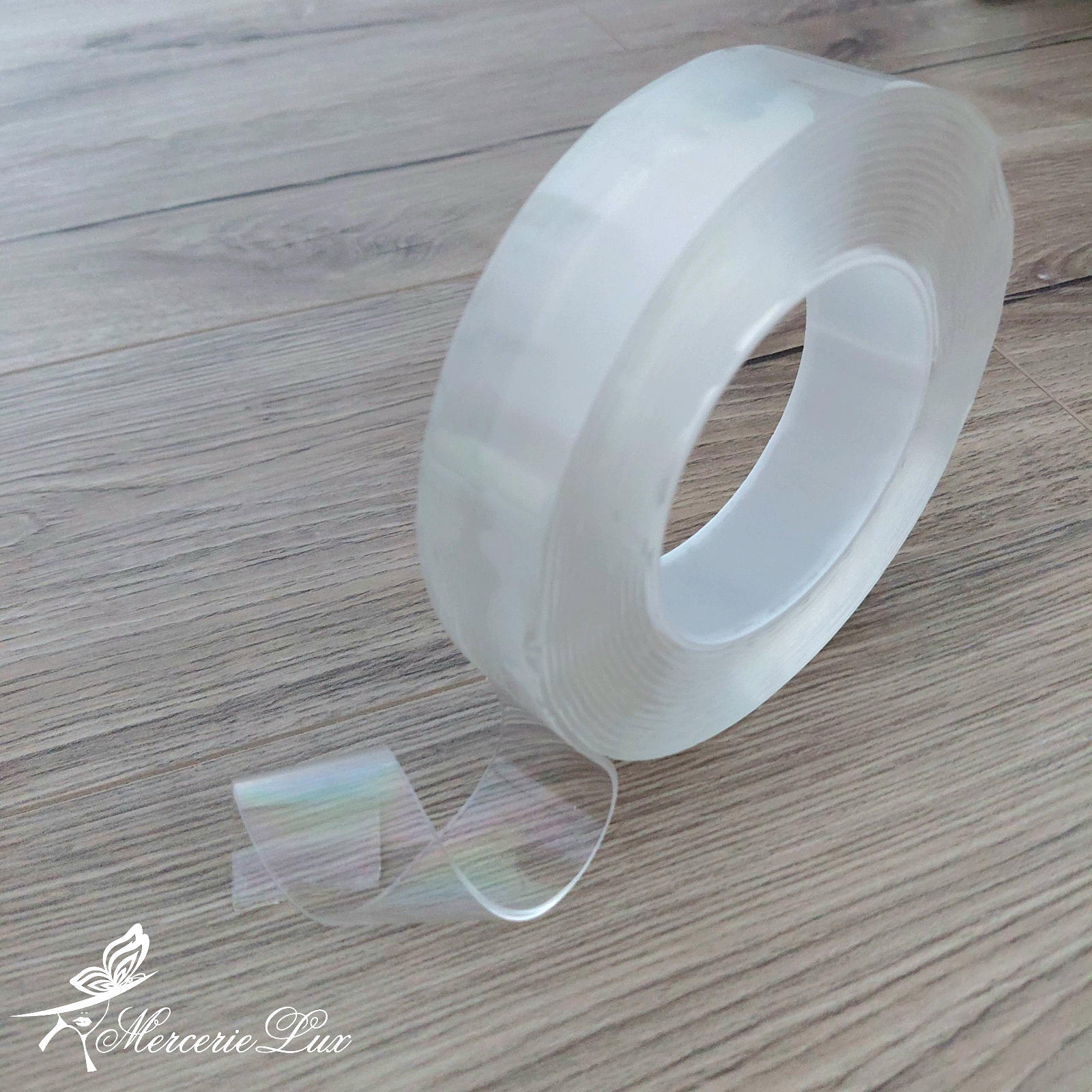 Bandă adezivă pe ambele fețe, ușor de spălat, impermeabilă, reutilizabilă.