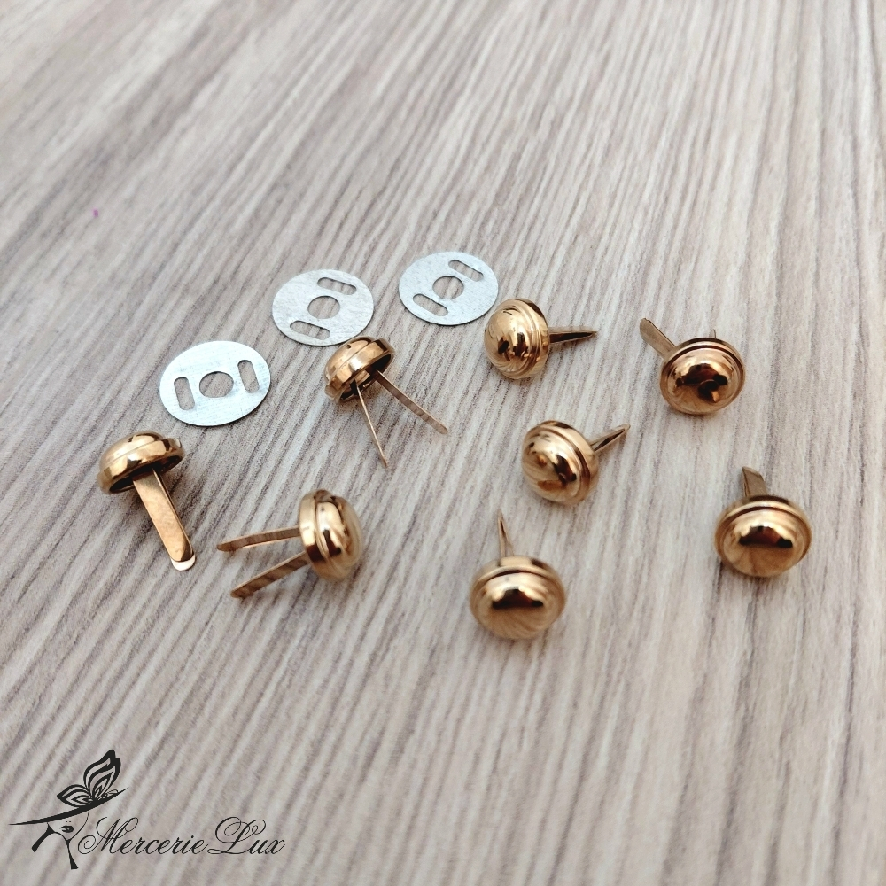 Se montează ușor folosindu-ne de o șaibă, se trece cuiul prin gaură apoi pe partea cealaltă a materialului se pune șaiba și se desfac cele două piciorușe presând ușor.
