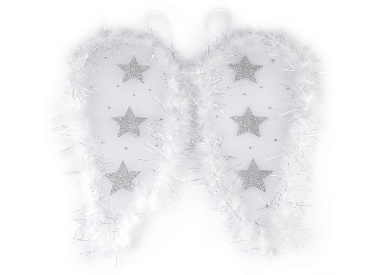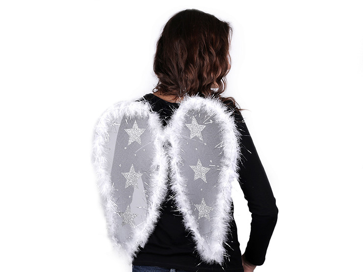 Sunt confecționate din sârmă rigidă, material textil cu steluțe strălucitoare și blăniță.Se fixează pe umeri cu două benzi.