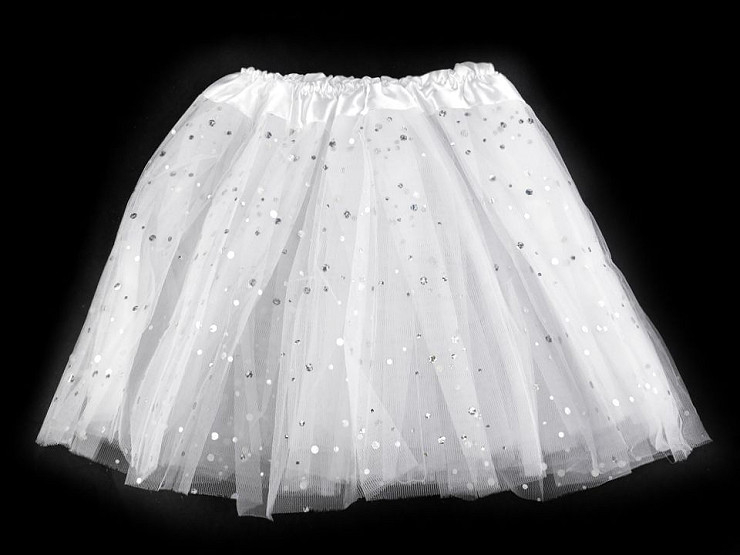 Fustă pentru fetițe din trei straturi de tull, cel superior împodobit cu paiete sclipitoare.