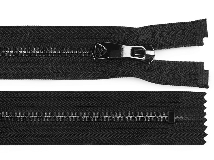 Fermoar metalic scurt, nedetașabil, cu cursor decorativ folosit pentru închiderea diverselor confecții textile, buzunarelor jachetelor, paltoanelor, buzunare interioare la genți, blugi, etc.