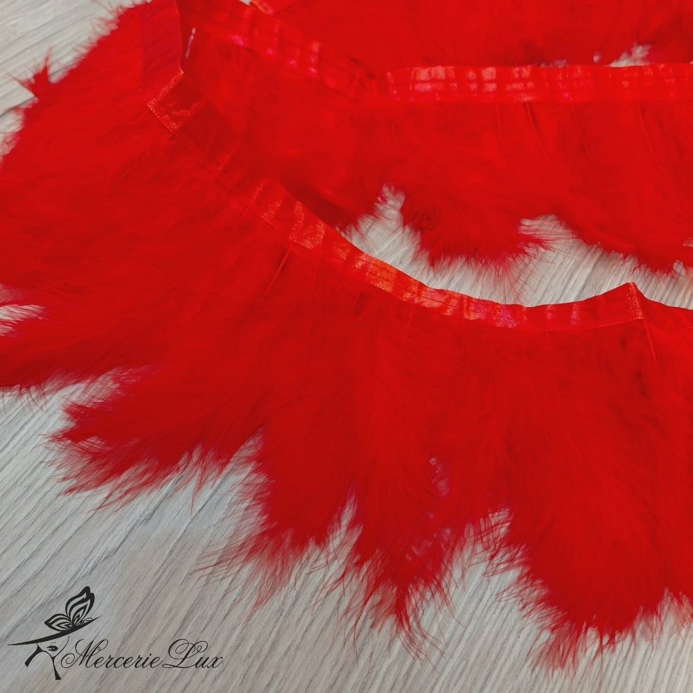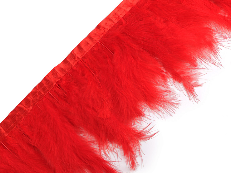 Pene de curcan cusute ferm pe o bandă satinată, deosebită pentru a decora ținute de petrecere, costume de dans sau carnaval, etc.