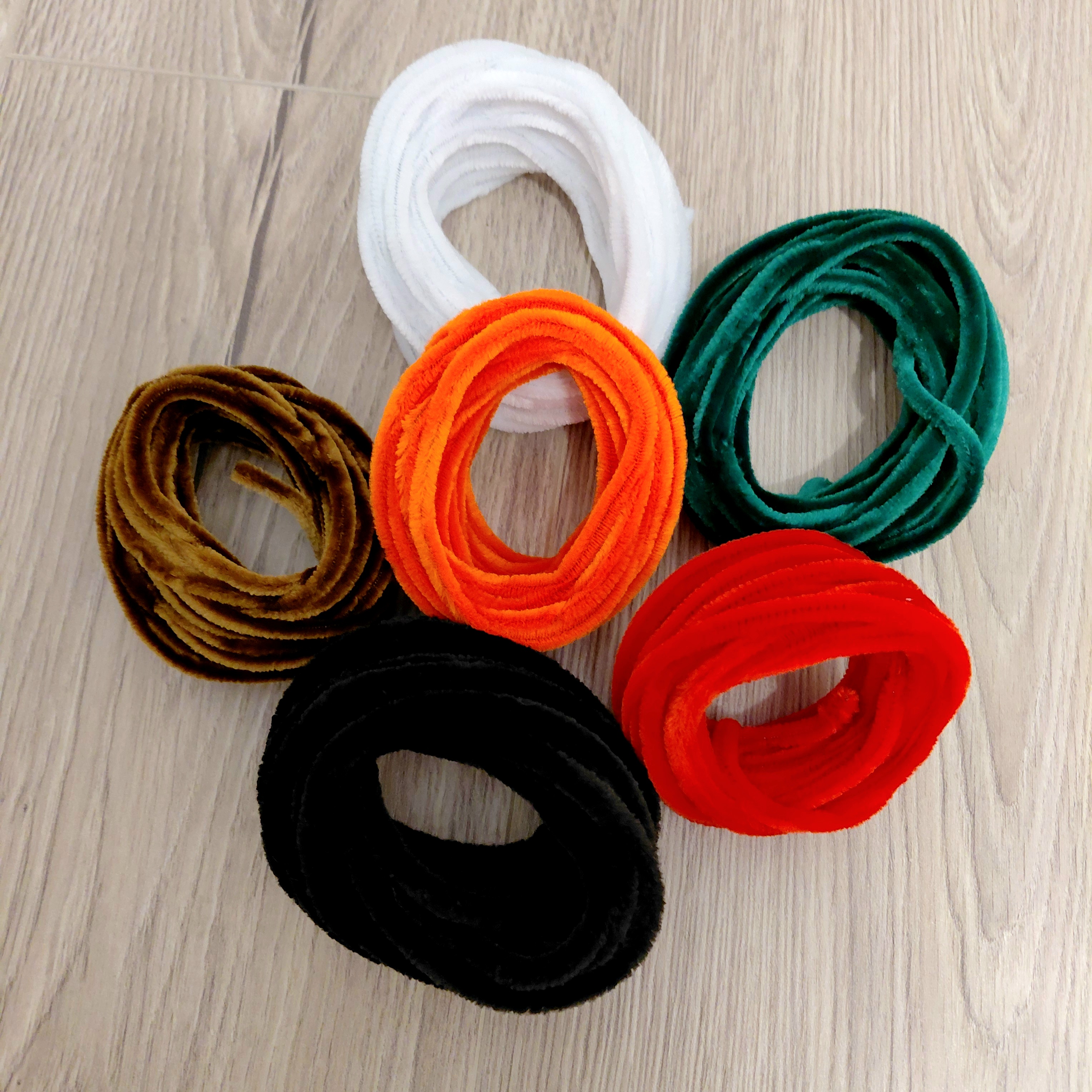 Tije de sârmă împletite cu pluș moale utile pentru realizarea de diverse decorațiuni, figurine pentru amuzamentul copiilor.