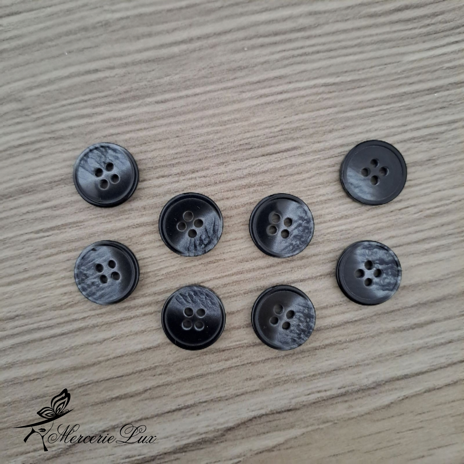 Nasturi plastic, patru găuri, model bărbătesc,mărimi diferite pentru sacouri și costume.
