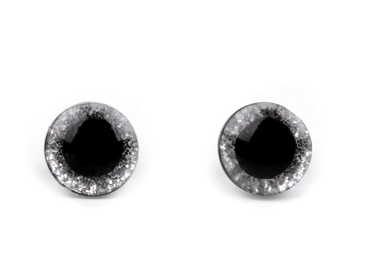 Ochi din plastic negru și margini cu sclipici diverse culori utilizați pentru confecționarea jucăriilor croșetate.