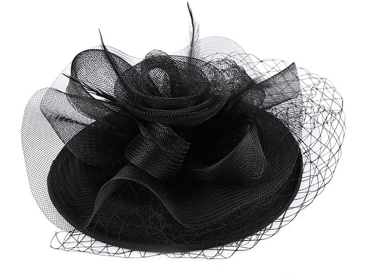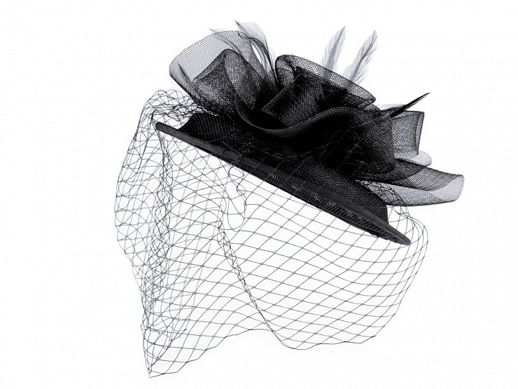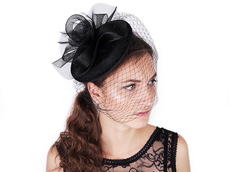 Pălărie elegantă cu voal care acoperă o parte a feței, potrivită a o purta la ocazii festive, carnaval, teatru, bal, evenimente funerare.
