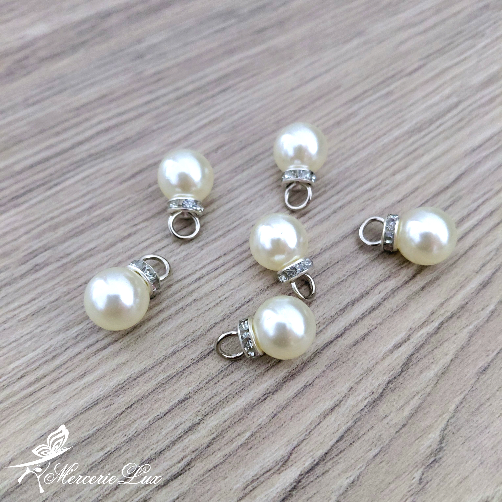 Pandantiv din perlă de plastic și ștrasuri de sticlă util la confecționarea de bijuterii.