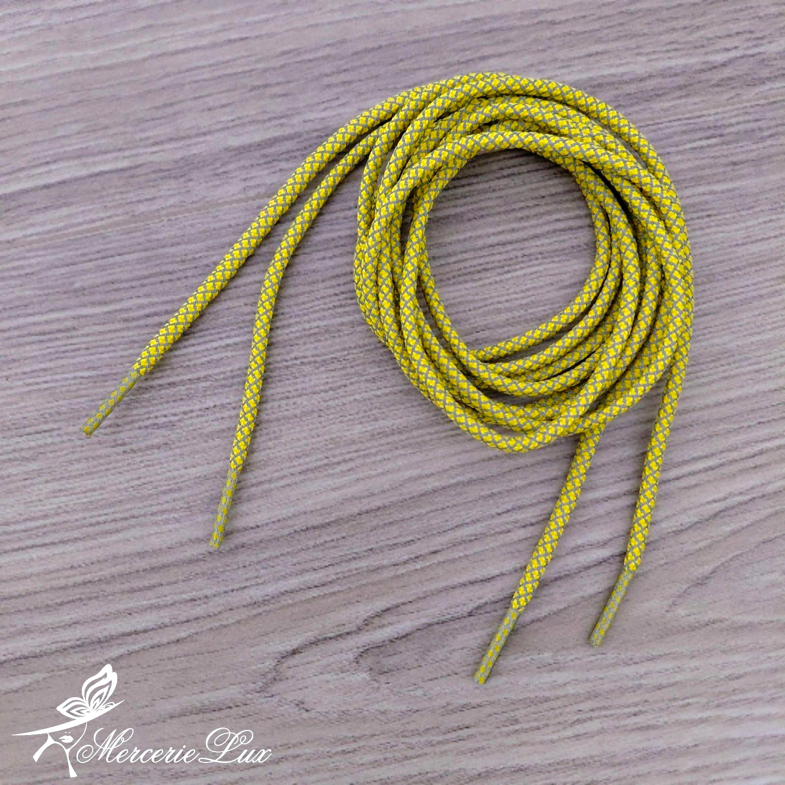 Șireturi rotunde din poliester cu fir reflectorizant.