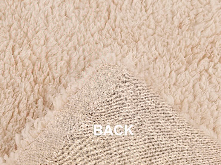 Țesătură sintetică ce imită blana de miel, perfectă pentru confecții călduroase vestimentare sau articole textile decorative pentru casă, pături, cuverturi, perne decorative.